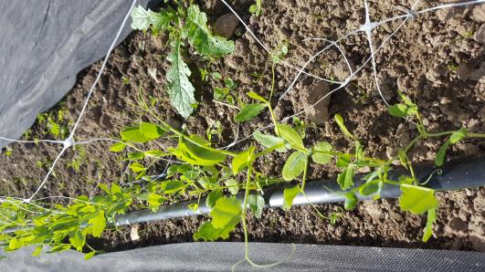 Time when 25% of plants have swollen pods and peas meet in the pod